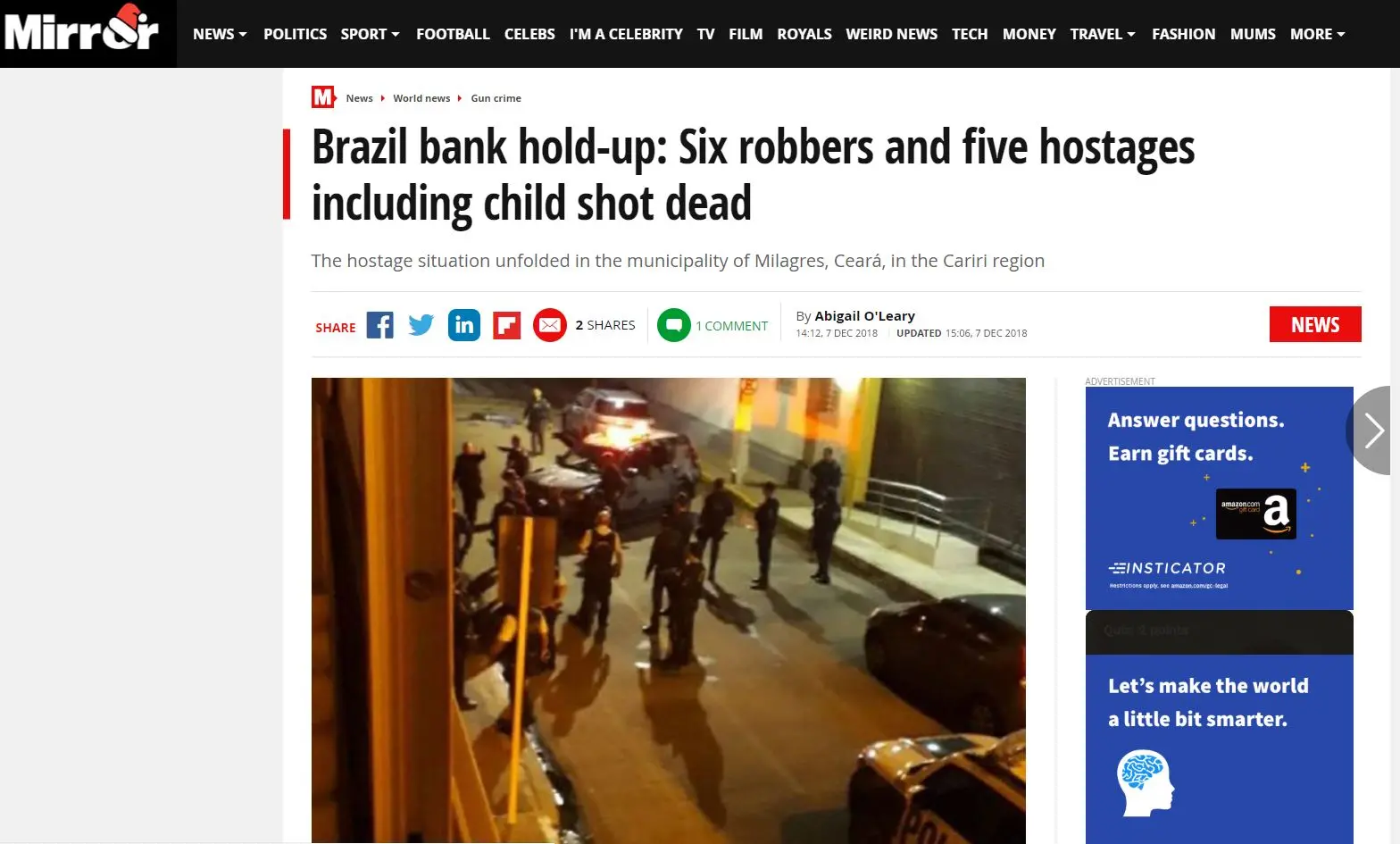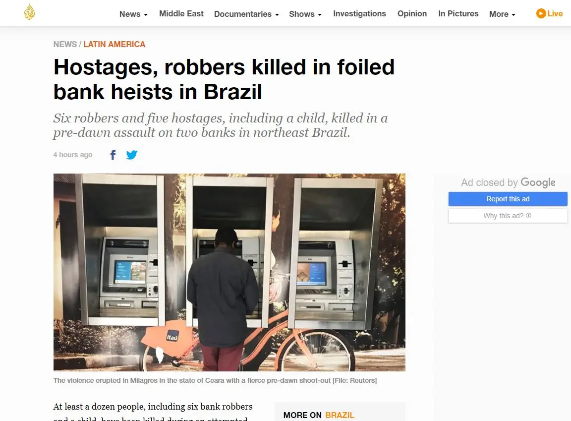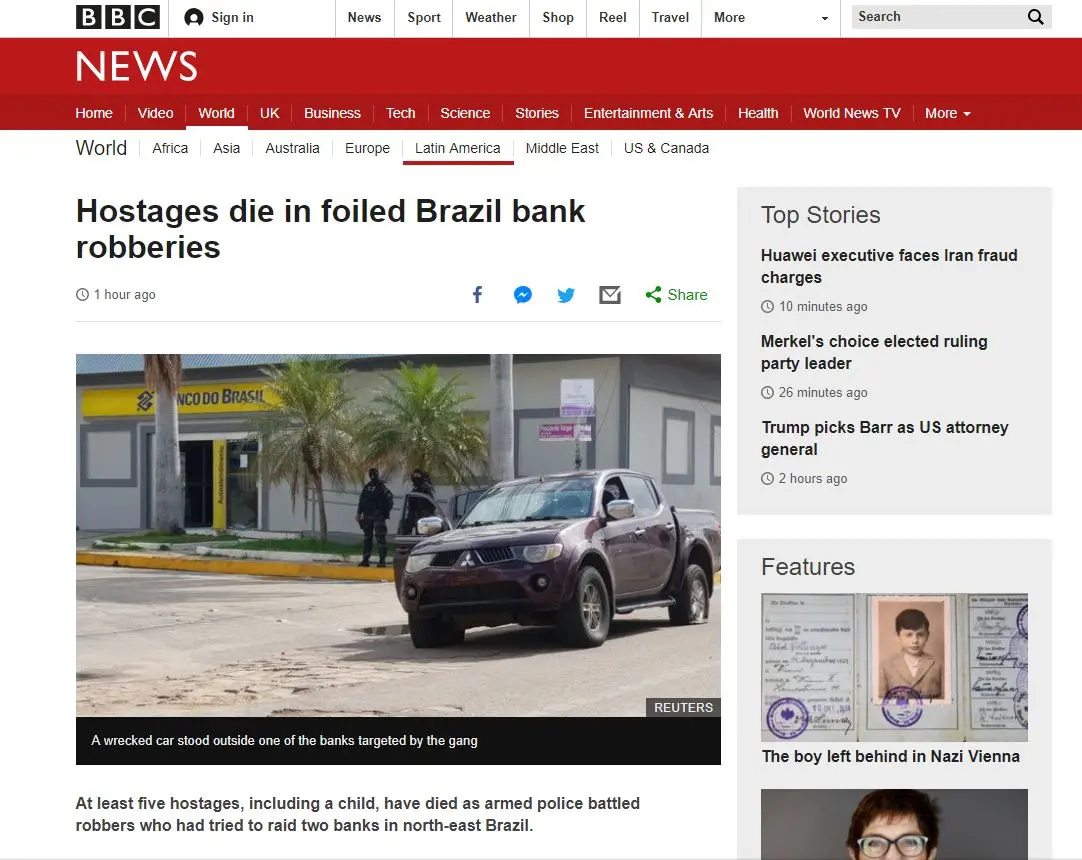Veículos internacionais mostram as cenas da tentativa de assalto ao banco no Cariri