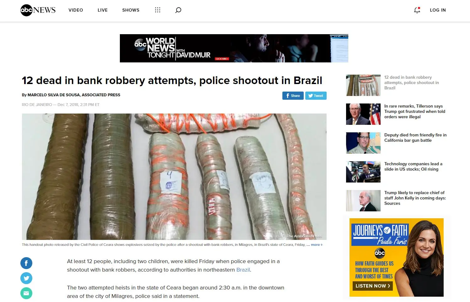A TV americana contextualizou o texto dizendo que o Brasil é campeão mundial em número de homicídios. "O Ceará é um dos estados mais violentos do Brasil", informou a ABC.