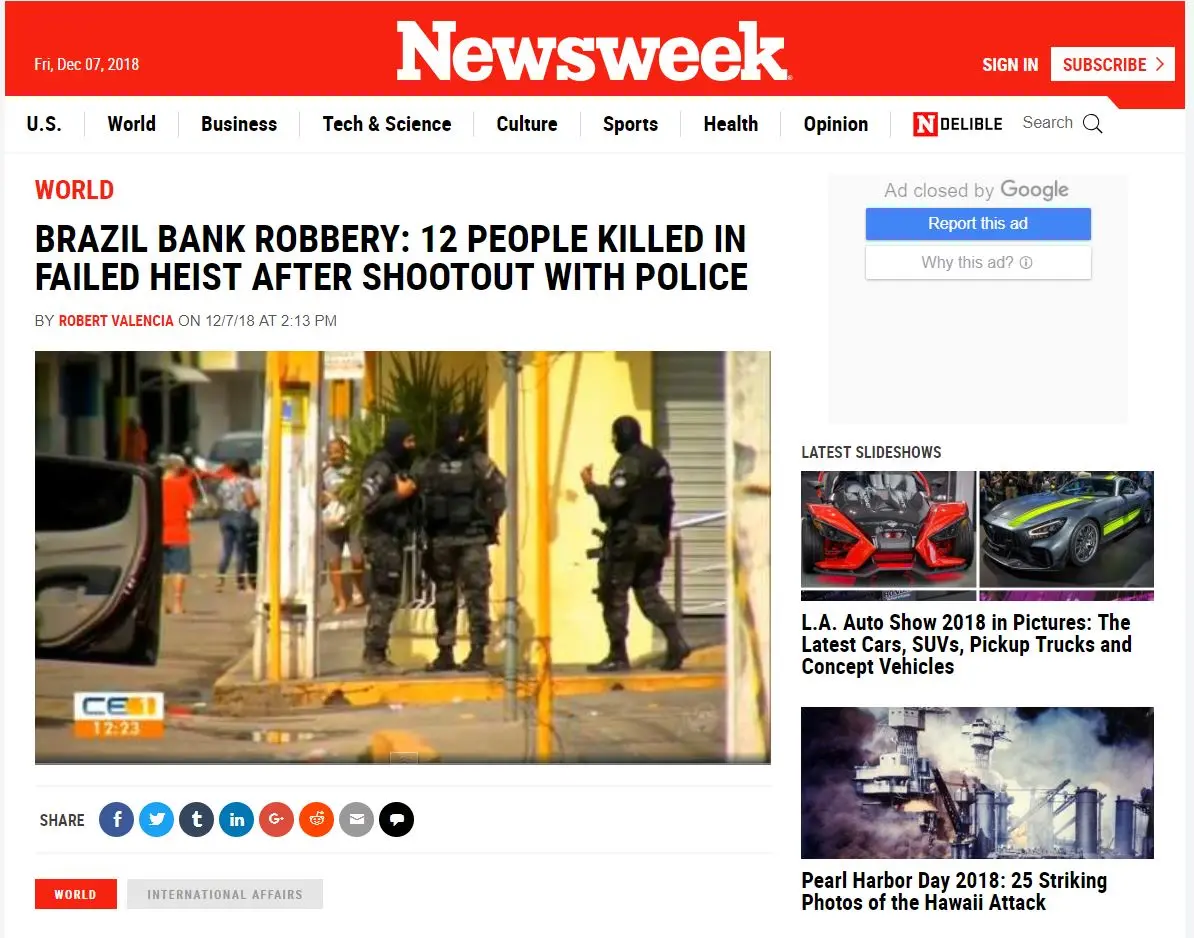 A revista americana "Newsweek" usou uma imagem do telejornal da TV Verdes Mares, o CETV 1ª edição, com a movimentação policial na local do crime, para ilustrar sua reportagem, em que detalhava que o "Ceará é o terceiro Estado com maior número de homicídios no Brasil". "Devido à sua localização geográfica no Brasil, o Ceará se tornou uma cobiçada passagem para o tráfico de drogas entre a Europa e a América do Sul", mencionou a publicação.