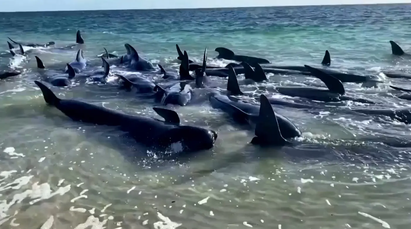Cerca de 140 baleias-piloto ficaram encalhadas em uma praia na Austrália, nesta quinta-feira (25). Uma equipe de resgate atua para salvar os animais, mas já foi confirmada a morte de 20 delas. Nesses casos, costumam recorrer à eutanásia como "resultado mais humano", explicou o Departamento de Biodiversidade, Conservação e Atrações da Austrália Ocidental.