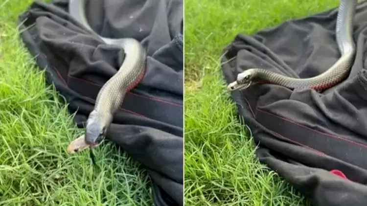 A serpente menor estava tentando fugir da boca da outra serpente, mesmo depois de ser devorada. Nas redes sociais, o grupo detalhou que fazia um trabalho de remoção das cobras em uma propriedade em Ormeau.