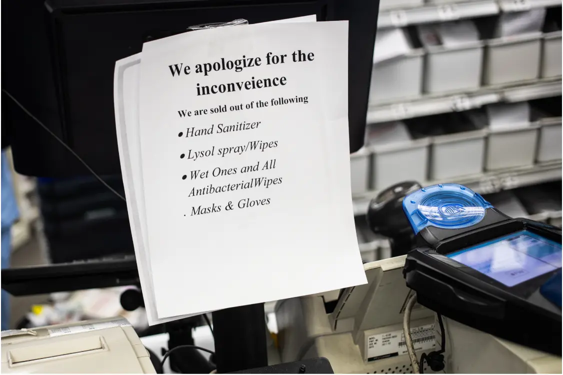 Nos Estados Unidos, farmácia novaiorquina avisa que foram esgotados de seu estoque produtos como máscaras, luvas, antisséptico de mãos, entre outros. A busca por produtos do gênero tem crescido grandemente em todo mundo. No país americano, que já registrou 25 mortes e 696 casos confirmados da doença, não foi diferente.