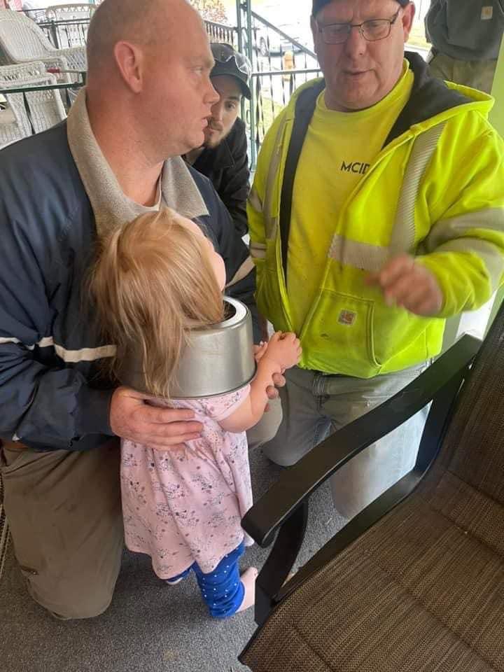 Uma criança prendeu a cabeça em uma forma de bolo de fundo removível enquanto brincava em Mifflin, na Pensilvânia (EUA), onde mora com os pais. Quinnley Meixel, de 2 anos, precisou ser socorrida pelos bombeiros da cidade. O caso ocorreu na segunda-feira (6) e repercutiu nesta semana na web.