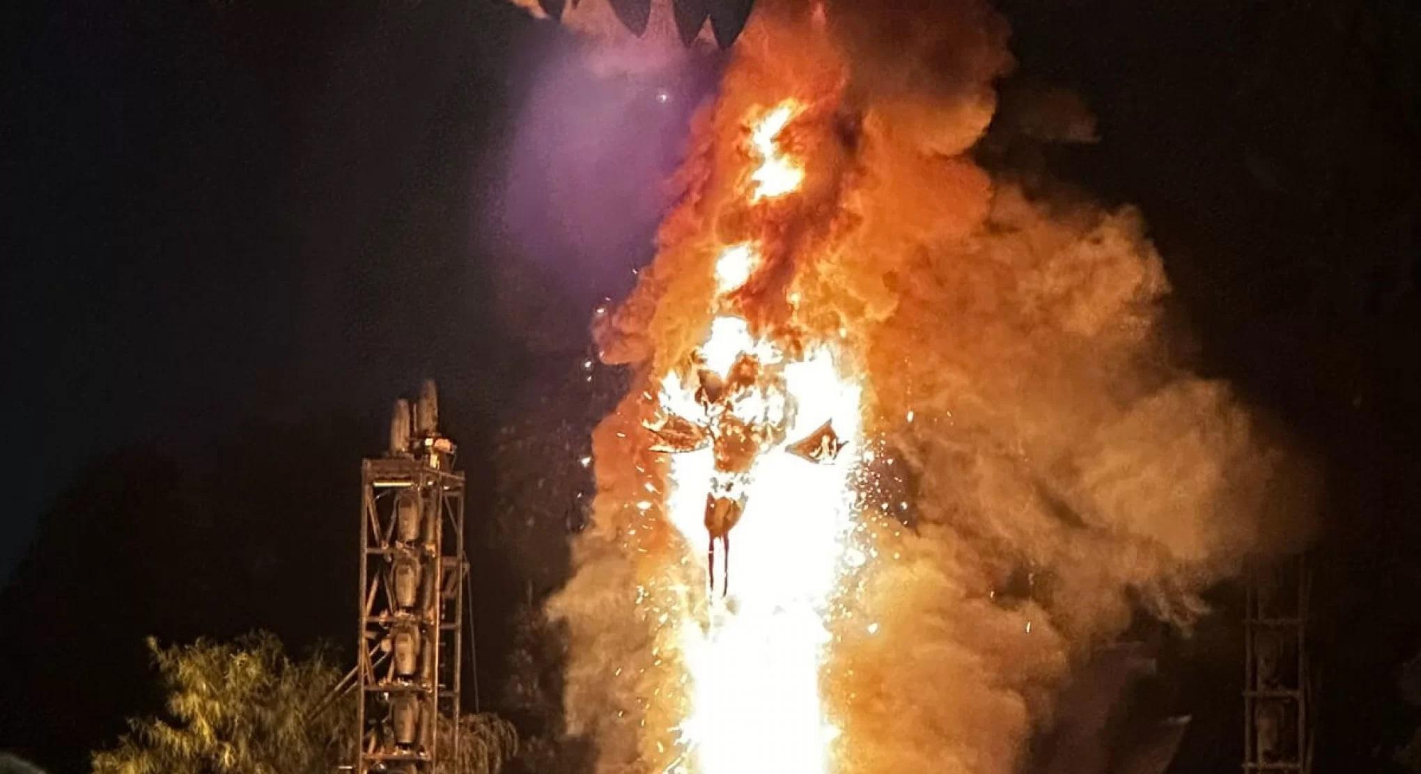 O público presente na apresentação postou diferentes vídeos nas redes sociais. Nas imagens, é possível ver o dragão totalmente envolvido em chamas, levando os membros do elenco a serem evacuados do local.