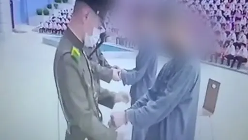Na gravação, realizada em 2022, os jovens de 16 anos são algemados diante de uma plateia de estudantes, num estádio ao ar livre. Na ocasião, oficiais fardados repreendem os rapazes por não "refletirem profundamente sobre seus erros". O flagra foi cedido à BBC pelo Instituto de Desenvolvimento Sul e Norte (Sand), instituição de pesquisa que atua com desertores do Norte.