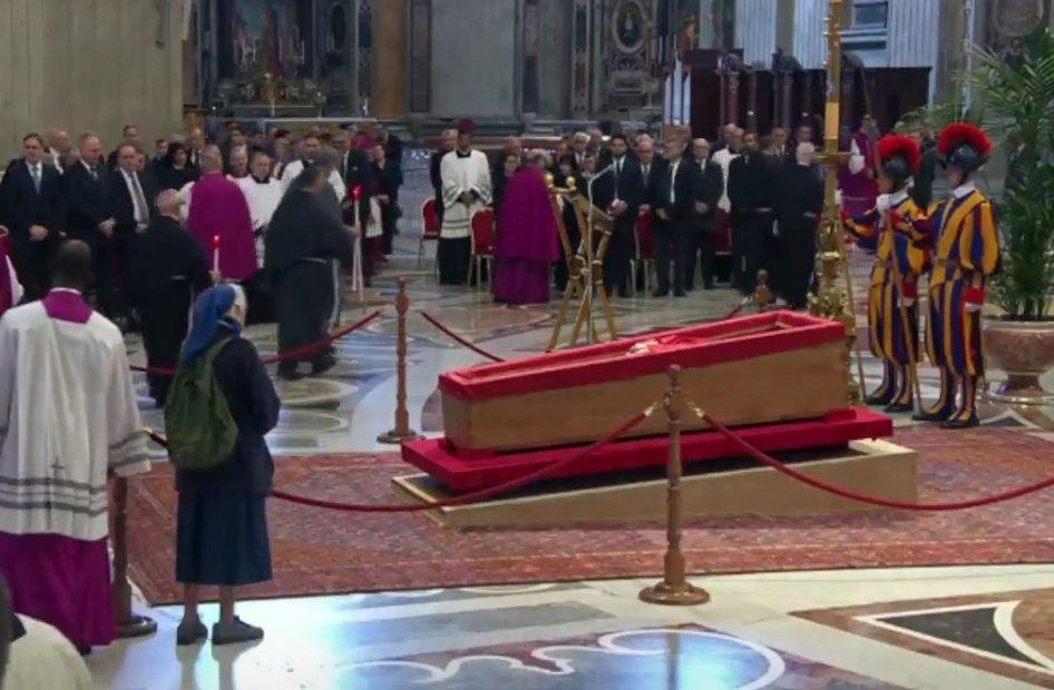 O pedido para que ela pudesse se aproximar foi feito pelo Santo Padre ainda em vida, pois segundo o protocolo, apenas cardeais, bispos e religiosos ligados ao trabalho no Vaticano poderiam ficar mais próximos do corpo exposto.