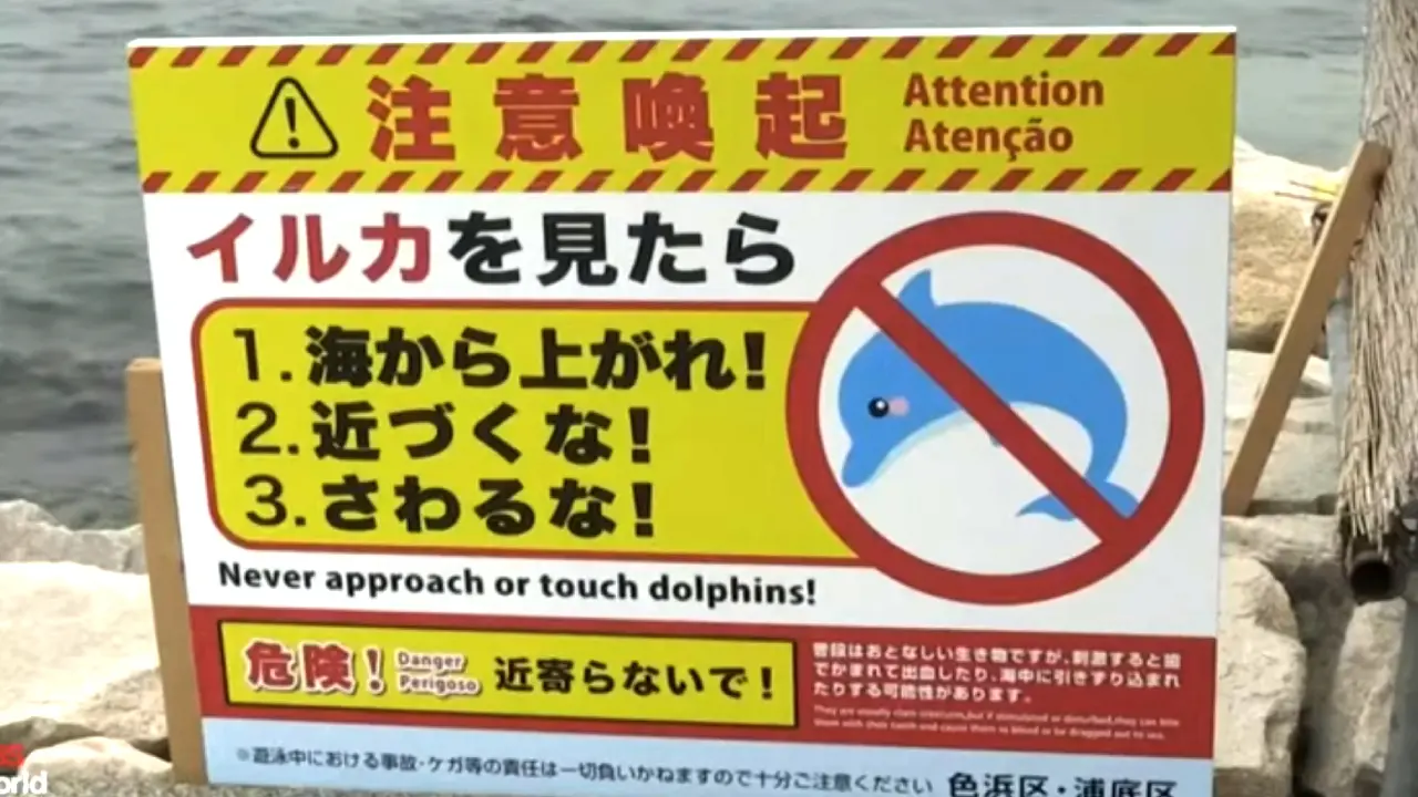 Na praia de Suishohama, uma associação turística local pediu cautela em site e distribuiu folhetos aconselhando as pessoas a não se aproximarem ou tocarem nos animais.