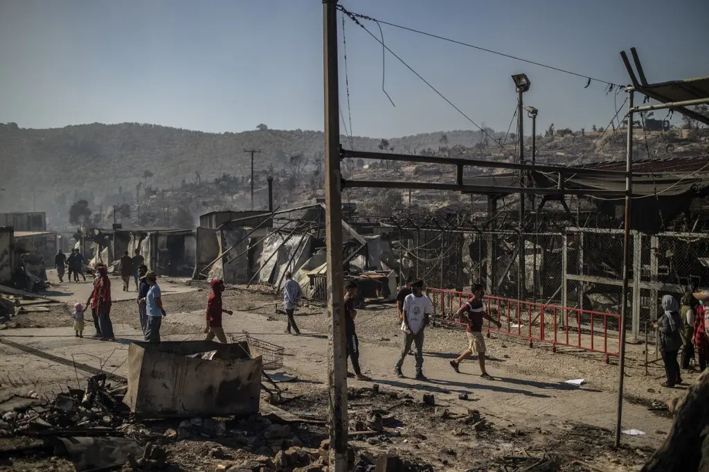 Na ilha grega de Lesbos, o acampamento de Moria ficou completamente destruído pelas chamas em 9 de setembro de 2020, após dois incêndios sucessivos.