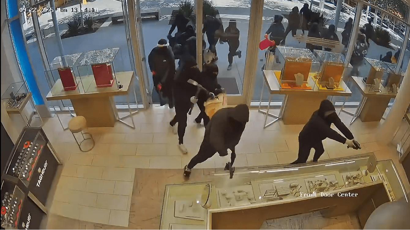 Uma joalheria localizada na cidade de San Ramon, na Califórnia (EUA), foi assaltada por cerca de 20 pessoas, na última segunda-feira (22). Uma câmera de segurança do empreendimento registrou o ataque ao estabelecimento.