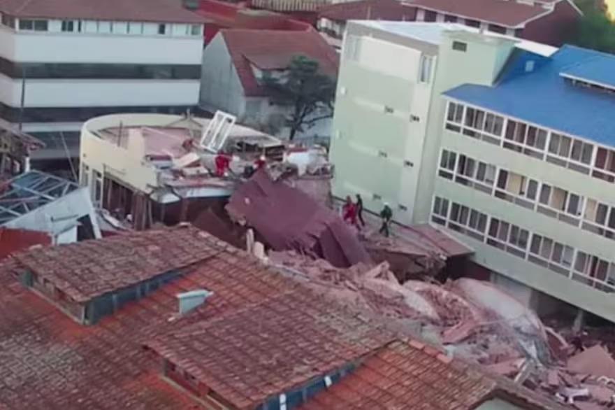 O impacto do desmoronamento afetou prédios próximos.