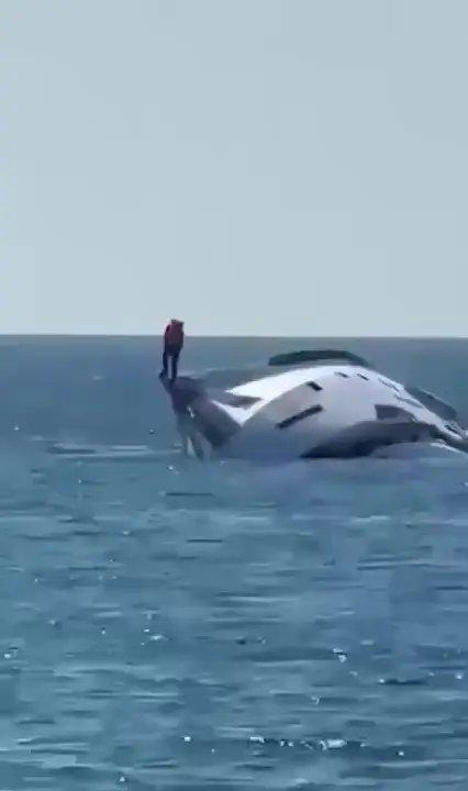 Um vídeo amador registrado por testemunhas mostra o momento em que o iate se inclina e afunda rapidamente no mar.