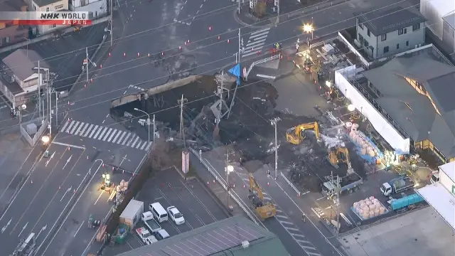 Segundo informações da emissora japonesa NHK, a abertura tinha inicialmente 10 metros de largura e três de profundidade. Equipes de resgate chegaram a entrar em contato com o idoso, que ficou preso na cabine do caminhão. Contudo, com o passar dos dias, a cratera foi cedendo, soterrando o veículo cada vez mais.