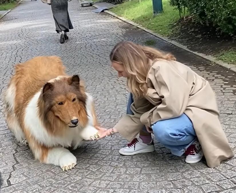 O primeiro passeio do homem trajado como o animal foi mostrado em vídeos. Nas imagens, ele fica "de quatro" caminhando pelas ruas com uma "tutora", mostrando truques e recebendo atenção e carinho de transeuntes.