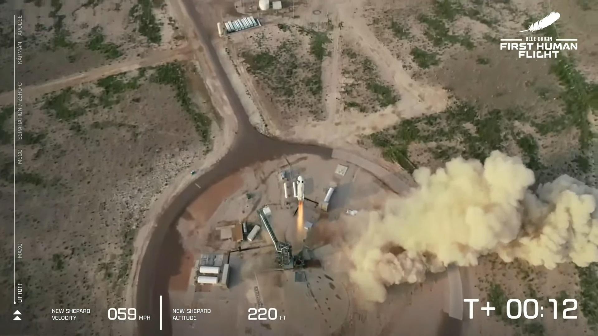 A missão aconteceu dias depois que o fundador da Virgin Galactic, Richard Branson, cruzou a fronteira final do planeta, superando por pouco o magnata da Amazon no duelo espacial entre os dois bilionários.