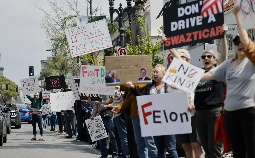 Os manifestantes são críticos às demissões, redução de gastos e diminuição das regulamentações feitas por Elon Musk desde o início do governo de Donald Trump.