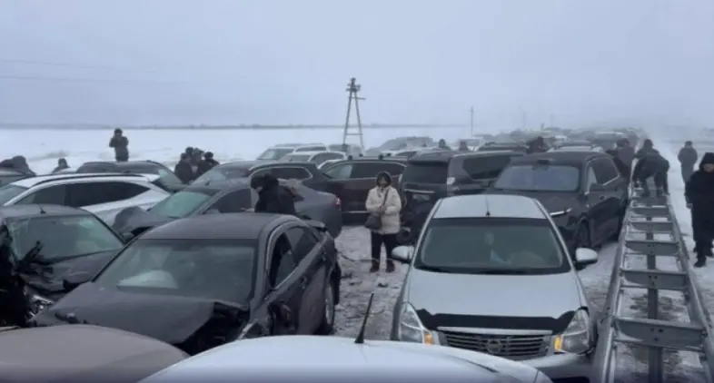 Um engavetamento com cerca de 95 veículos bloqueou a rodovia Astana-Petropavlovsk, no Cazaquistão, em meio a uma intensa tempestade de neve nesta sexta-feira (3).