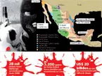 Sete facções disputam território e controlam o tráfico de drogas no México, que movimenta US$ 20 bilhões por ano e que matou 28 mil pessoas desde 2006, a maioria imigrantes ilegais que tentavam entrar nos Estados Unidos.
