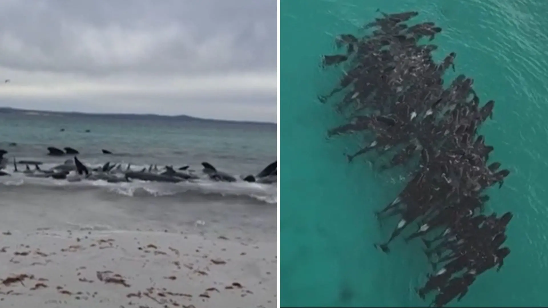 Formado inicialmente por quase 100 baleias-piloto, o grupo teria encalhado na praia de Cheynes, localizada na cidade de Albany, na terça-feira (25). Ao serem informados sobre a situação, dezenas de especialistas e voluntários se deslocaram até o local para tentar salvar os cetáceos. A maioria deles, ainda assim, morreu durante a madrugada.
