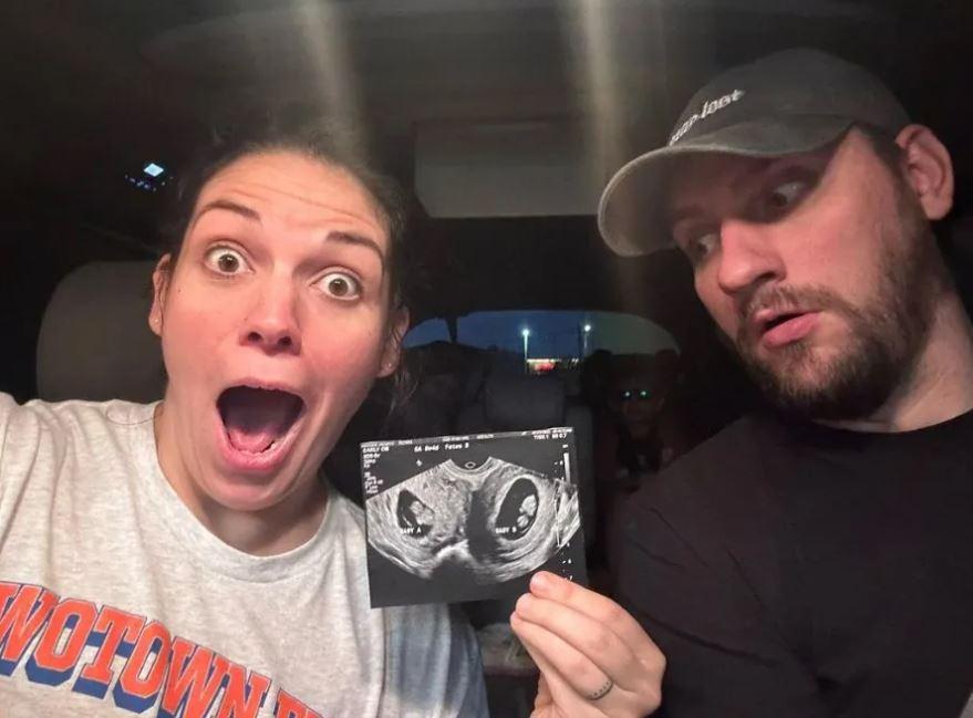 A descoberta da nova gravidez veio quando ela fez um ultrassom de rotina. Nas redes sociais, a mulher diz ter ficado "maravilhada" e que, com o marido, Caleb, "riu muito".