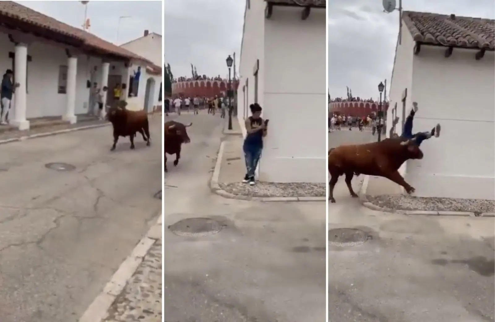 Uma mulher foi atacada por um touro em Titulcia, na Espanha, enquanto estava aparentemente distraída no celular. O incidente, que aconteceu no último sábado (26), foi registrado por pessoas que estavam no local e repercutiu nas redes sociais.