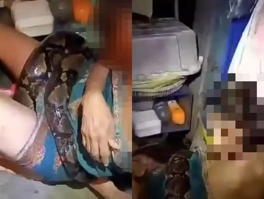 A mulher fazia comida em sua cozinha quando foi surpreendida pelo bote da píton