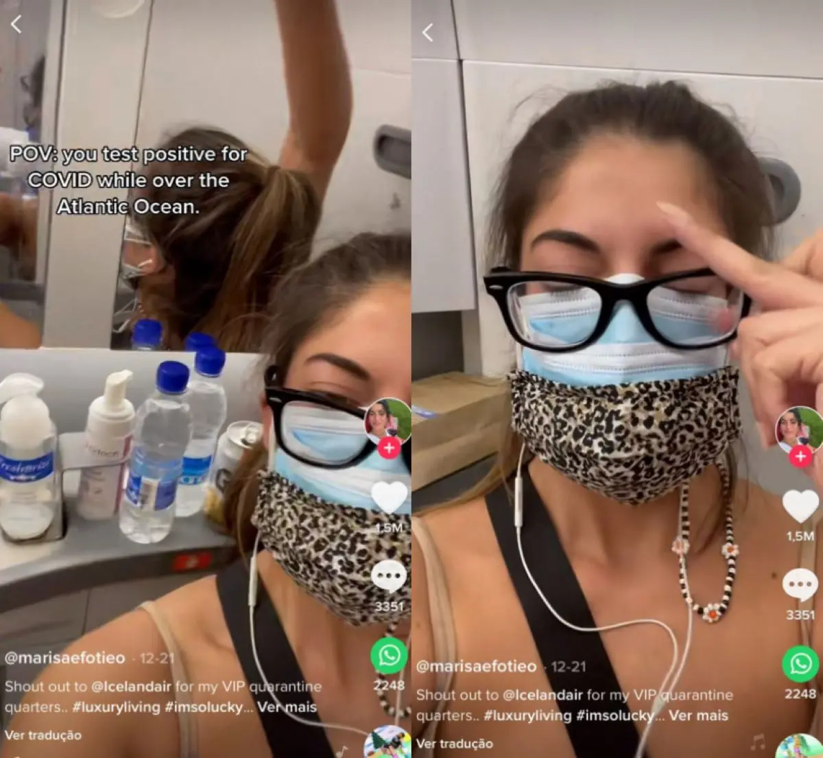 "Um alô para a Icelandair pelas minhas instalações VIPs de quarentena", disse Marisa em vídeo no TikTok no dia 21, que já passa das 4.4 milhões de visualizações.