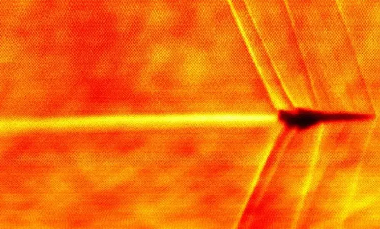 Segundo a Boom Supersonic, a imagem documenta a mudança de densidade do ar em torno da aeronave e a onda de choque resultante.