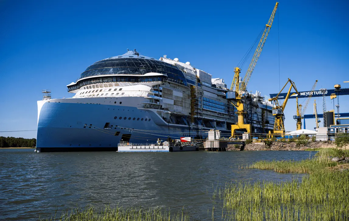 A embarcação está passando pelos ajustes finais no estaleiro Meyer Turku, um dos principais construtores navais do mundo, localizado em Turku, na Finlândia.