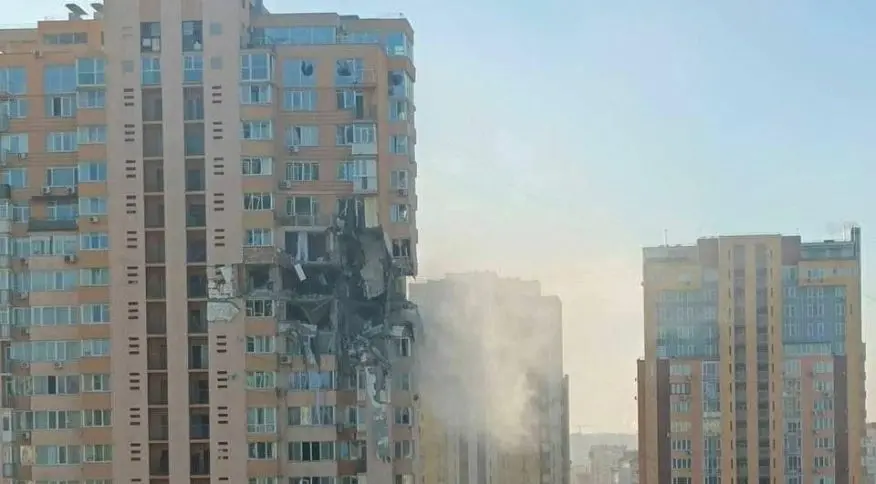 O projétil caiu entre o 18º e o 21º andares do prédio, segundo as mesmas fontes, que acrescentaram que os moradores estavam sendo retirados do local. Vídeos divulgados nas redes sociais mostravam um prédio alto com a fachada destruída e escombros na rua.