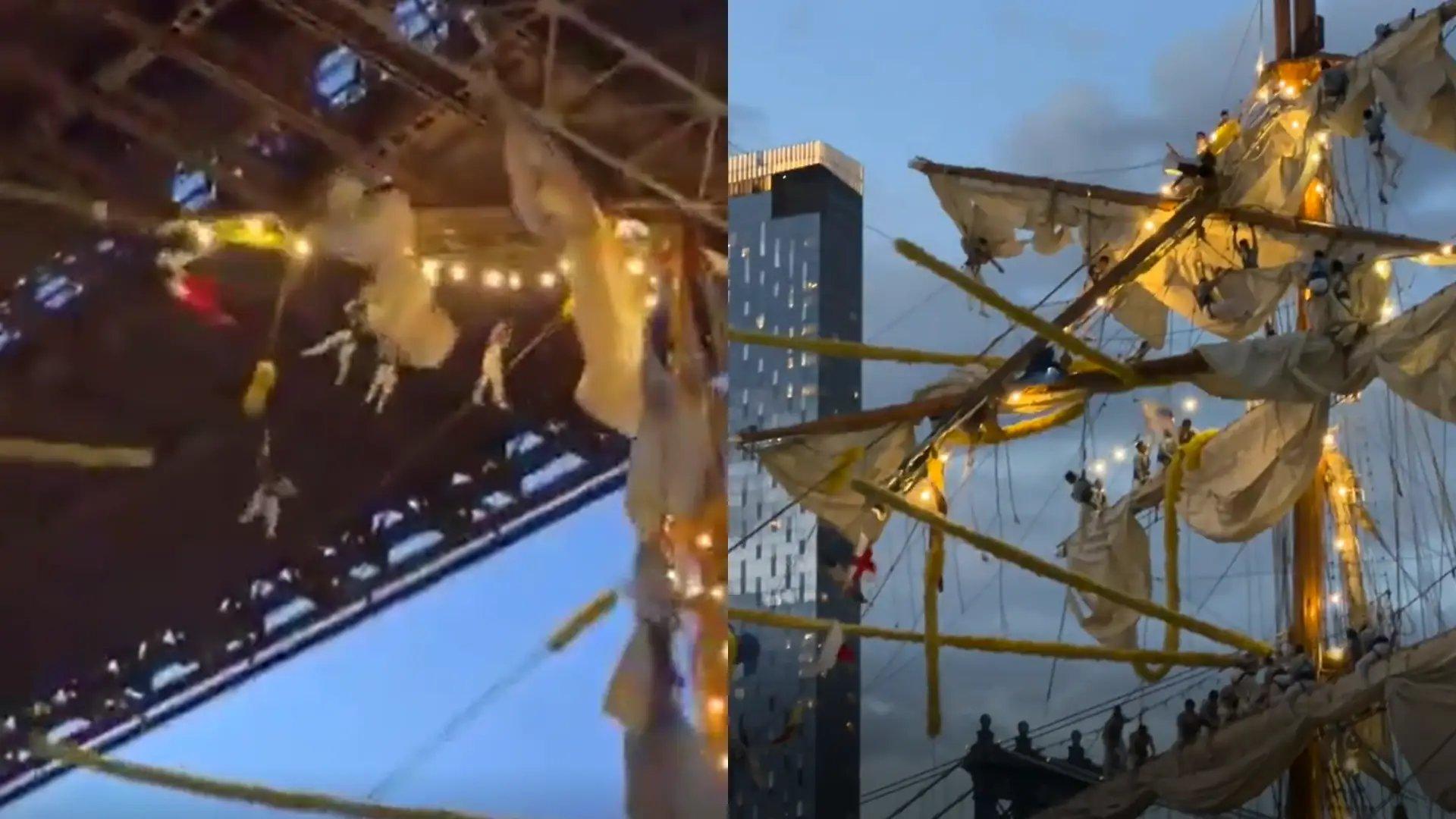 Novo ângulo mostra tripulantes caindo de navio mexicano que colidiu com ponte em Nova York; veja