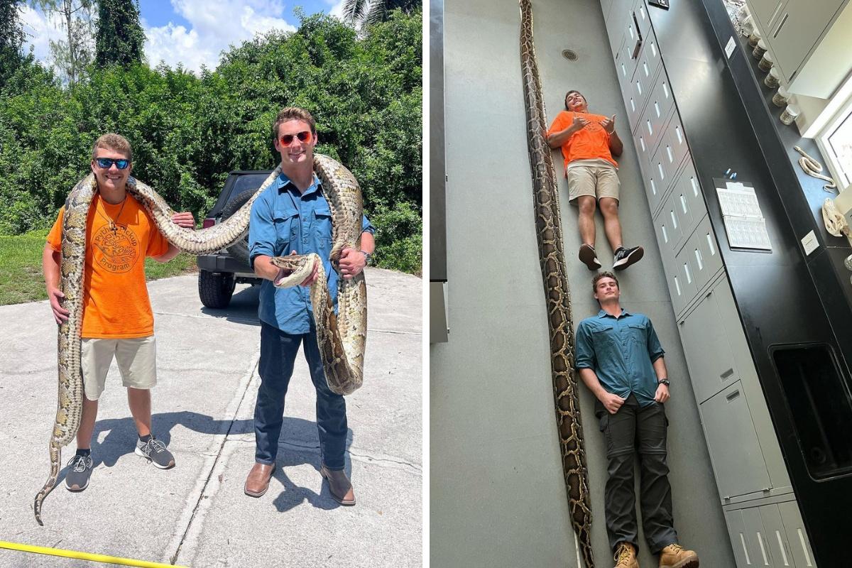 A dupla Jake Waleri e Stephen Gauta é conhecida nas redes sociais por caçar cobras. Na última quarta-feira (12), eles publicaram um vídeo em que entram em confronto com uma píton birmanesa na Flórida, nos Estados Unidos. O animal de aproximadamente 5,8 metros foi o maior registrado da espécie.