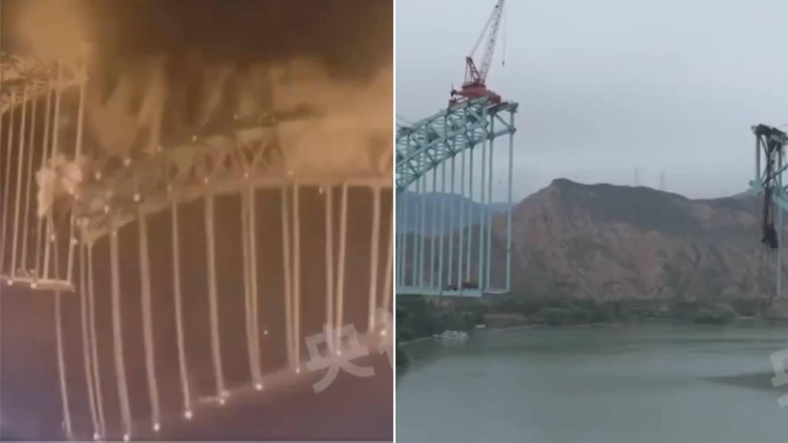 Em vídeo registrado por um sistema de monitoramento, divulgado pela imprensa estatal, é possível observar o momento em que a seção central do arco da ponte Jianzha cede repentinamente, caindo nas águas do rio Amarelo. (Assista abaixo)