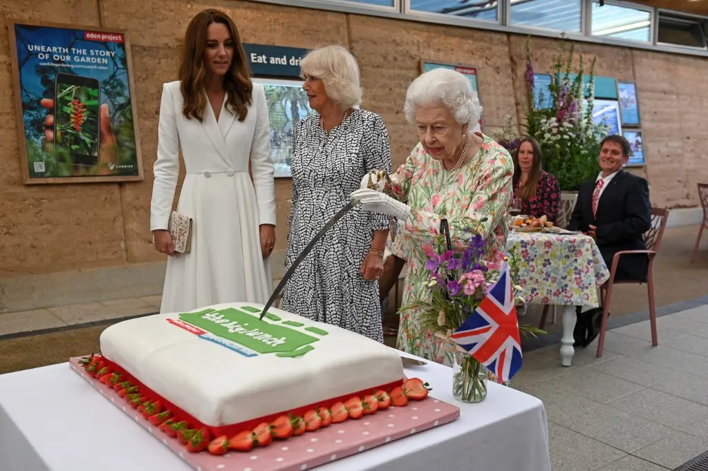 A rainha Elizabeth II usou uma espada para cortar um bolo durante o evento do G7, que reúne líderes dos sete países mais ricos do Ocidente. O fato aconteceu na última sexta-feira (11), na região da Cornualha, sudoeste da Inglaterra, no Reino Unido, onde o encontro é realizado.