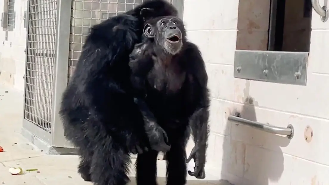 Reação de chimpanzé ao ver o céu pela primeira vez após 28 anos em jaula comove web; veja vídeo