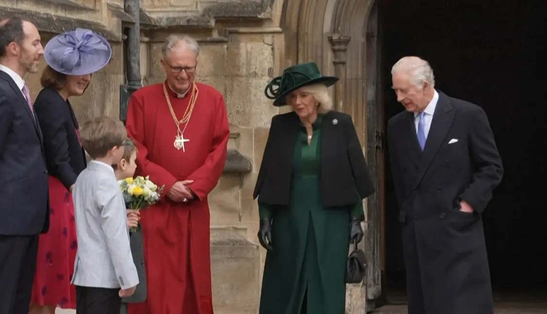 O monarca parecia estar de bom humor ao chegar de carro à Capela de São Jorge, um edifício do século XIV nos terrenos do Castelo de Windsor, a cerca de uma hora de carro de Londres. Ele surgiu acompanhado de sua esposa, a rainha Camilla, para o evento – um marco no calendário da monarquia.