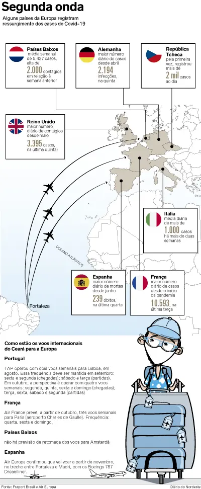 Segunda onda do coronavírus na Europa afeta planos de cearenses