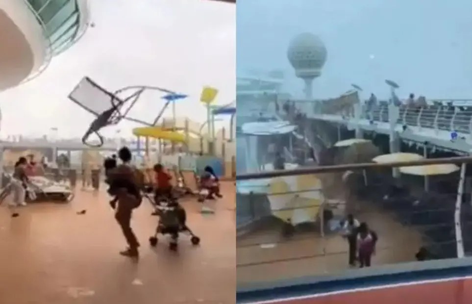 Tempestade atinge cruzeiro nos EUA e passageiros tentam se proteger de ventania; veja vídeo