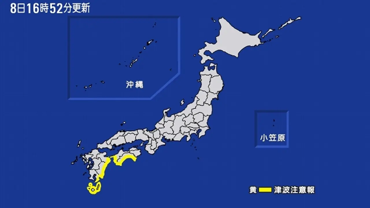 Ondas de até um metro estão previstas em algumas áreas costeiras das ilhas de Kyushu e Shikoku, informou o canal público NHK.