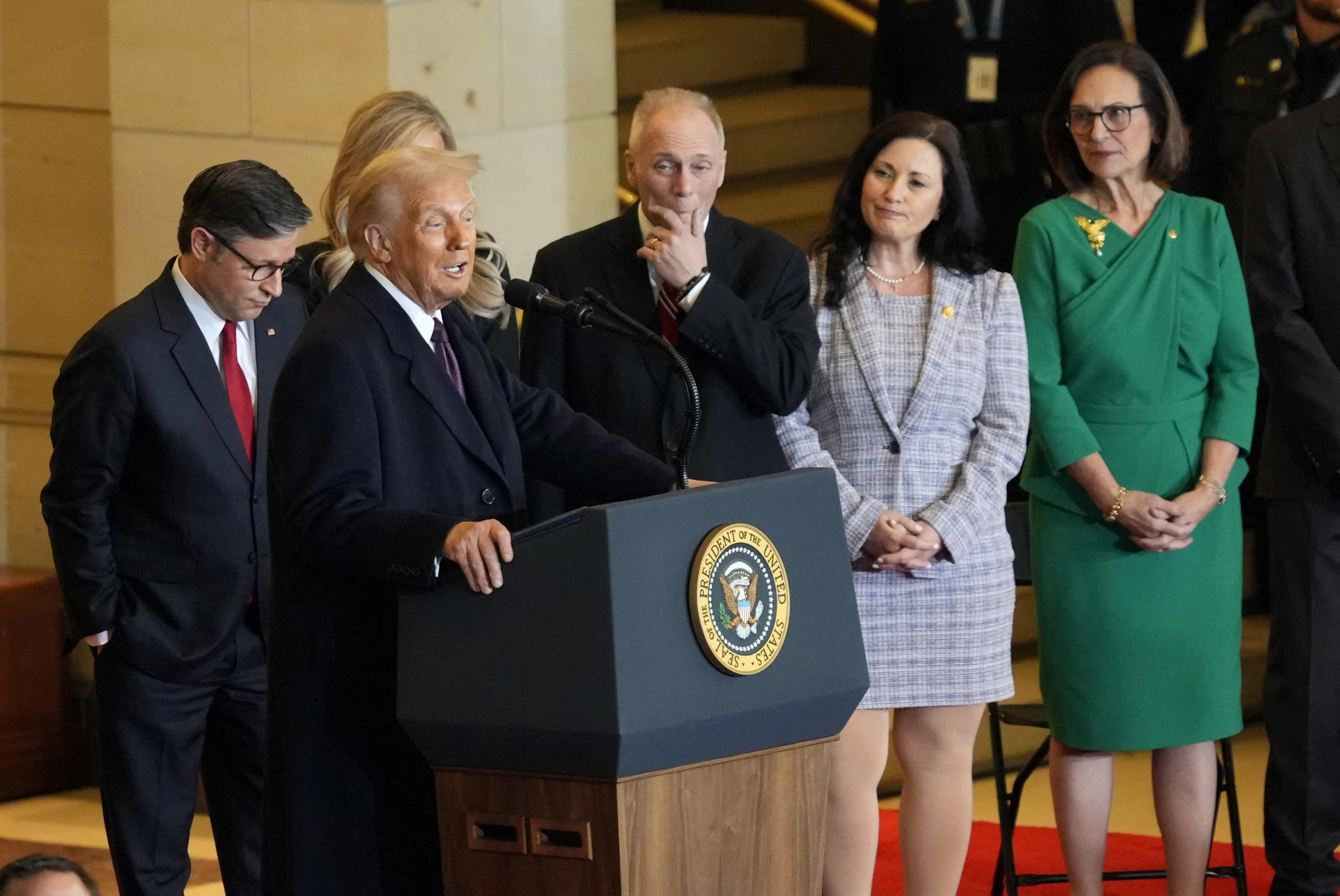 Trump também disse que vai "restaurar a liberdade de imprensa nos Estados Unidos". Falou que os EUA terão agora "dois gêneros: o feminino e o masculino" e prometeu reintegrar funcionários públicos dispensados por não apresentarem comprovantes de vacinas de Covid-19.