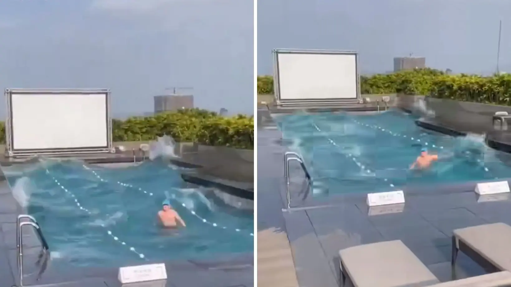 Nas imagens é possível ver o homem se mantendo calmo, enquanto a água da piscina balança com força para ambos lados. Conforme o Mirror Media, o local foi fechado e uma equipe seguirá monitorando a situação.