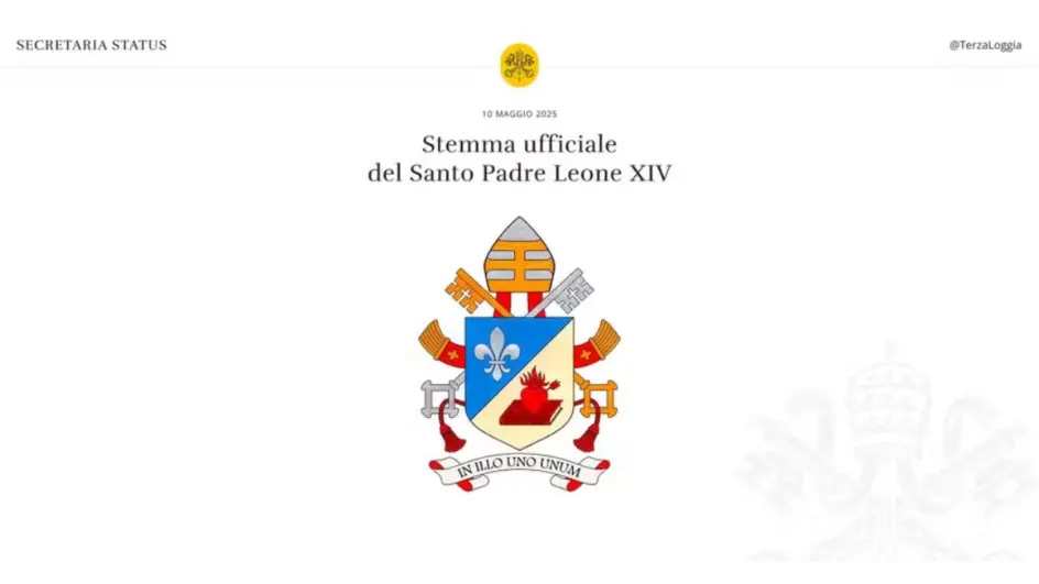 Lema episcopal de Leão XIV É In Illo uno unum (Em um só somos um), palavras que Santo Agostinho pronunciou em um sermão sobre o Salmo 127