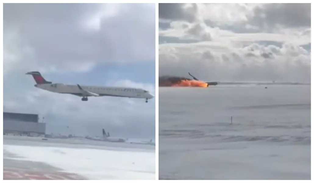 Vídeo mostra momento em que avião da Delta Airlines pousa e capota no Canadá; assista