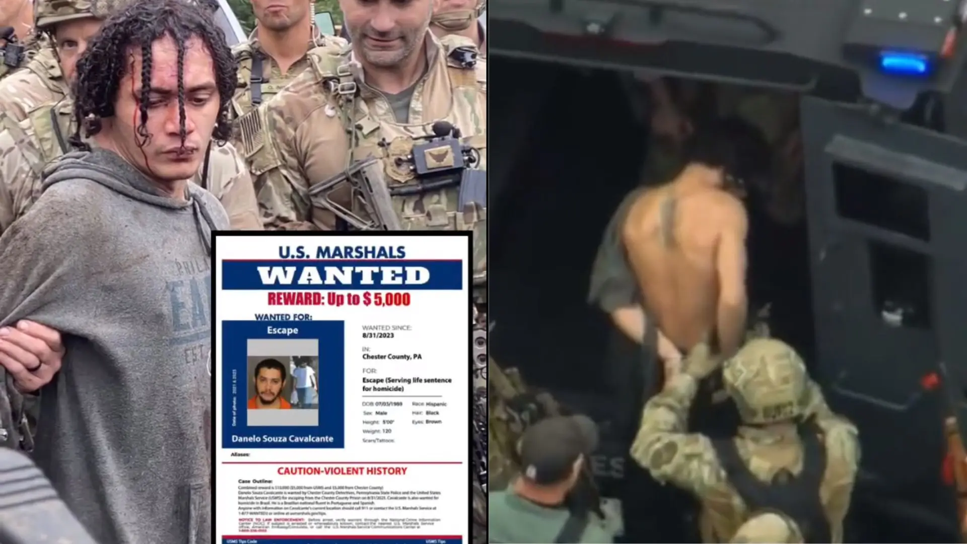 Vídeos registrados pela rede CBS mostram o momento da prisão de Danilo Cavalcante, brasileiro que ficou foragido da polícia norte-americana durante 14 dias.