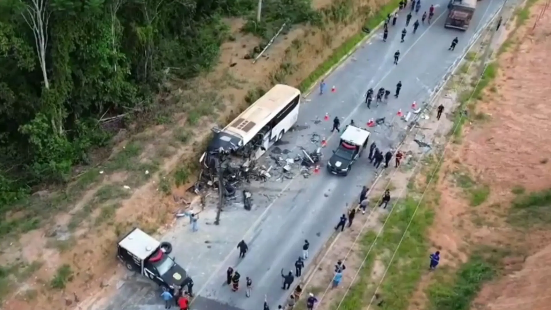 A batida foi violenta e vídeos que circulam nas redes sociais mostram que a frente do ônibus ficou completamente destruída. Equipes de resgate e segurança foram acionadas para prestar socorro às vítimas e isolar a área do acidente.