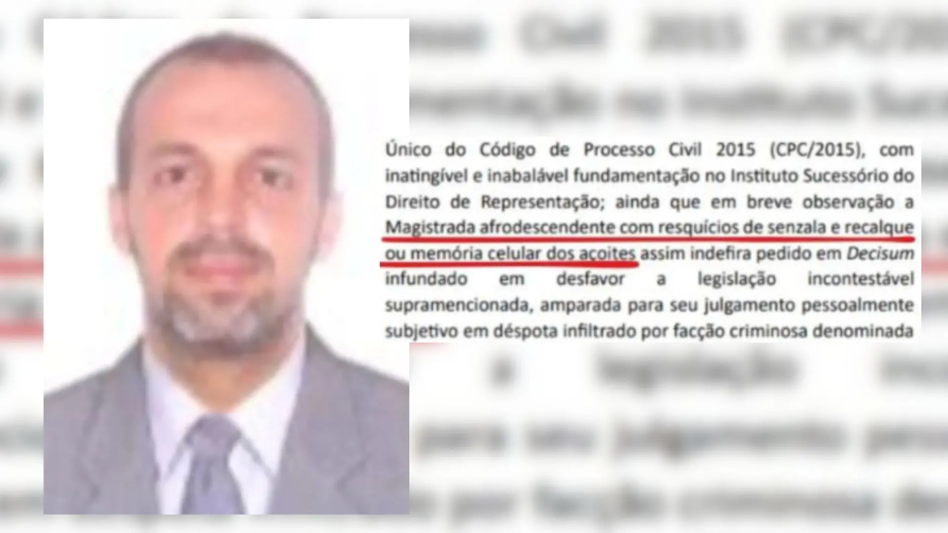 Ele afirmou, em trecho do texto que se tornou público, que a magistrada era “afrodescendente com resquícios de senzala e recalque ou memória celular dos açoites”.