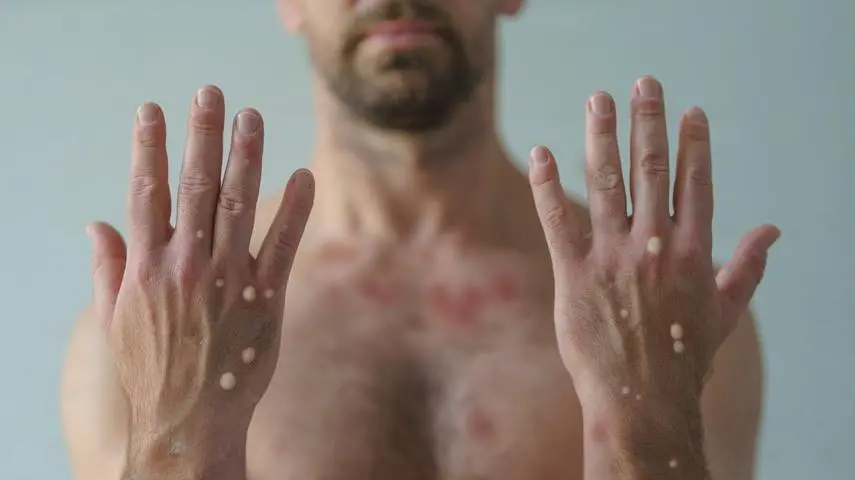 As lesões na pele, principal característica da doença, tendem a se concentrar no rosto, palmas das mãos e solas dos pés. Podem também ser encontradas na boca, genitais e olhos, segundo a OMS.