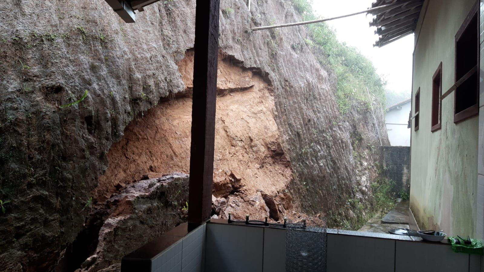 Parte do Morro da Forca deslizou e caiu sobre casarões históricos do município. Há riscos de novos deslizamentos ocasionados pelas chuvas