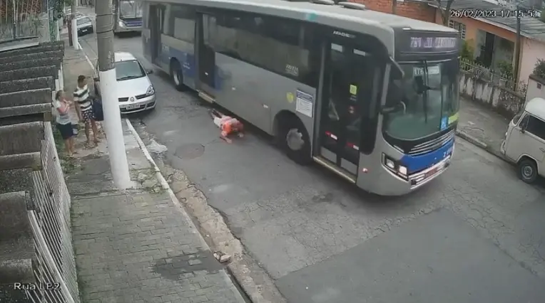 O vídeo mostra que após conseguir descer, o idoso tenta se segurar nas portas do coletivo, mas o motorista acelera e arrasta a vítima, que cai no chão. Em seguida, Dalcy é atropelado na região das pernas pelas rodas de trás do coletivo.