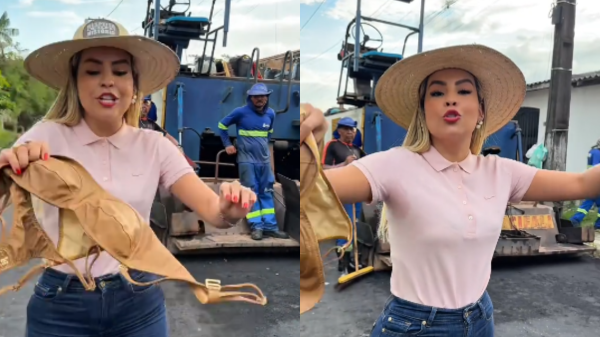 A prefeita de Marituba (PA), Patrícia Alencar, voltou às redes sociais com uma postagem bem-humorada que faz referência à polêmica envolvendo um vídeo em que aparece dançando de biquíni. A nova publicação, feita na sexta-feira (6), mostra a gestora visitando uma obra de pavimentação, quando é abordada por um operário segurando um conjunto de roupa de banho e perguntando: “E o vídeo de biquíni, prefeita?”.