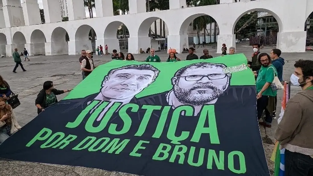 Os ativistas estenderam uma bandeira com os rostos de Dom e Bruno nos Arcos da Lapa e participaram de uma ação para protestar contra as mortes do jornalista, do indigenista e contra os crimes ambientais nas florestas do país.